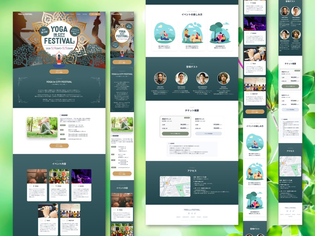 WEB ヨガイベント告知・チケット販促LP WEB ヨガイベント告知・チケット販促LPを想定した作例です。 (デイトラ(デザインスクール)課題作品) 2026年2月20日 投稿先 LP LP WEB デザイン ← 過去の投稿へ コメントを残す コメントをキャンセルメールアドレスが公開されることはありません。 ※ が付いている欄は必須項目ですコメント ※ 名前 ※ メール ※ サイト 次回のコメントで使用するためブラウザーに自分の名前、メールアドレス、サイトを保存する。